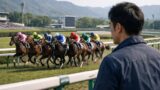 日本人女性が見る競馬レース後の場面